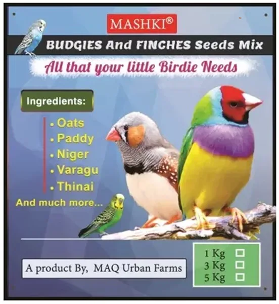 Nutritious and balanced budgerigar food crafted to support vibrant feathers, strong immunity, and active lifestyles. MASHKI Exclusive Seeds Mix For Budgies & Finches with 16 Essential Ingredients / Multigrain Seed Oats